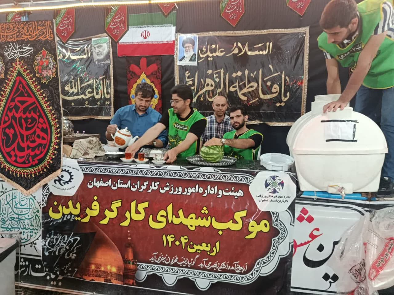 به گزارش روابط عمومی هیئت و اداره امور ورزش کارگران استان اصفهان - موکب "شهدای کارگر" در مسیر عبور زائران اربعین حسینی در شهرستان فریدن، به نیابت از شهدای کارگر و به همت جامعه کار و تولید استان و با همکاری اداره امور ورزش کارگران استان اصفهان به رسم سالهای گذشته در حال خدمترسانی به زائران امام حسین (ع) است. این موکب با هدف ارادت و خدمت به زائران امام حسین (ع) و گرامیداشت شهدای کارگر که در راه خدمت به کشور جان خود را فدای انقلاب کردهاند، با حضور همکاران ، عاشقان و دلباختگان مکتب امام حسین (ع) در طول ایام اربعین، علاوه بر پذیرایی از زائران، با یاد این عزیزان به تجلیل آنان می پردازد .
